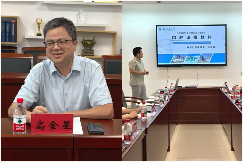 口腔外科学教研室主任高金星老师进行了“课程思政经验分享”,他结合口腔外科学课程实际,分享如何将思政教育融入专业教学;林天骥老师开展了《口腔印模材料》观摩示范课,直观展示了高效的教学设计、清晰的课堂讲授与积极的师生互动,赢得了在场教师的一致好评。