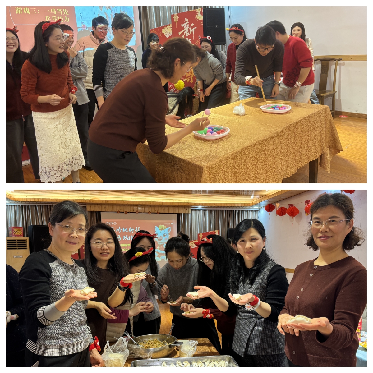 年会还设置了趣味互动游戏环节。教职工们积极参与,现场气氛紧张而欢乐。通过游戏,大家增进了彼此之间的了解与情谊,感受存济大家庭的温暖与力量。