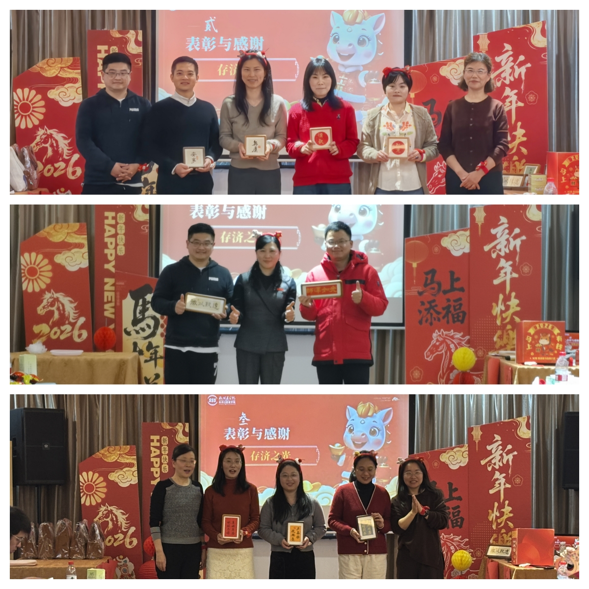 2026年1月27日晚,存济口腔医学院以“存济驰新程,马跃绘宏图”为主题,召开了全院教职工年会暨领导班子述职会。此次年会不仅是一场总结会,更是一场凝聚人心、共谋发展的展望,全院教职工欢聚一堂,共同回顾过去一年的成绩,继往开来再创佳绩。年会由丁锐、程霖两位老师主持。